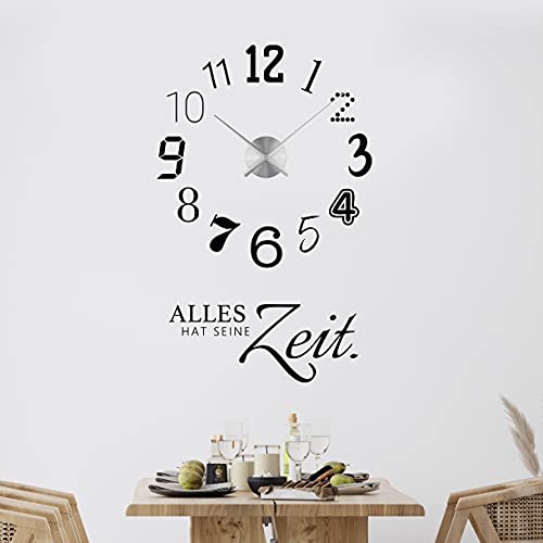 tjapalo® vr22 XL Wanduhr Küche Uhr mit Uhrwerk Wandtattoo Alles hat seine Zeit wandtattoo Wohnzimmer spruch zitate Küchenuhr, Farbe: [...]