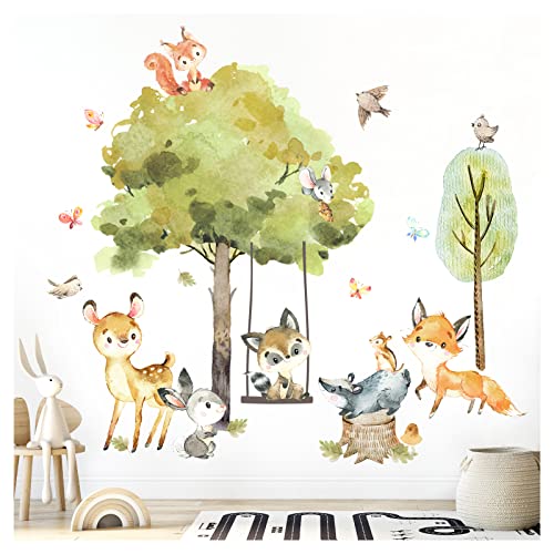 ✅ LIEFERINHALT - Das selbstklebende Wandtattoo mit Tieren und Bäumen, das Ansichtsbild entspricht 73 x 53 cm und der große Baum hat eine Größe von 35 x 45 cm (Breite x Höhe). Wir liefern dir eine moderne Wanddeko in Premium Qualität für das beso