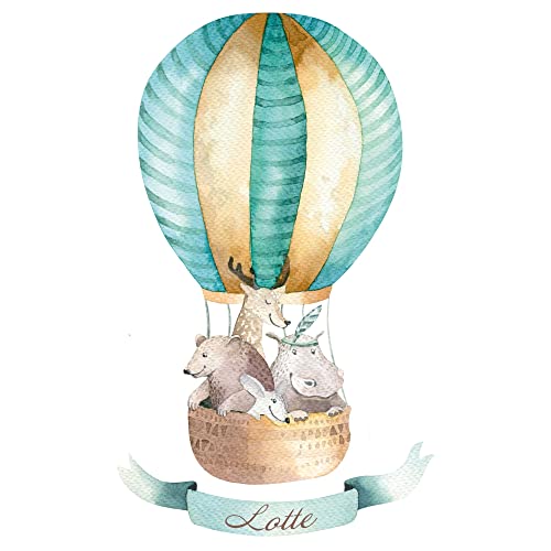 GRAZDesign Wandtattoo Kinderzimmer Heißluftballon mit Tieren | personalisiert mit Name | Babyzimmer Deko Jungen und Mädchen | Baby Aufkleber | türkis, Aquarell Farben, 82x50cm