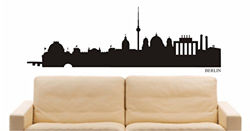 INDIGOS UG - Wandtattoo Wandsticker Wandaufkleber Aufkleber - Wandaufkleber e546 Skyline Stadt - Germany (Berlin) Design 1-40x13 cm - schwarz - Dekoration Küche Bad Büro Hotel