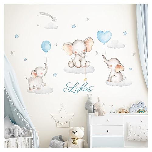 Little Deco Wandtattoo Elefanten & Wunschname I Wandbild 90 x 54 cm (BxH) I Kinderzimmer Babyzimmer Aufkleber Sticker Wandaufkleber Wolken Wandsticker Sterne DL709