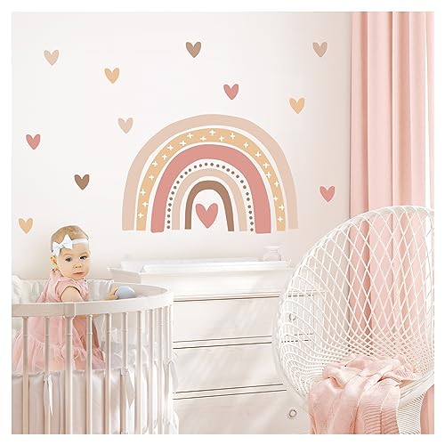 Little Deco Wandtattoo Regenbogen mit Herzchen Wandsticker Kinderzimmer Wandaufkleber Babyzimmer Mädchen Deko DL934-4