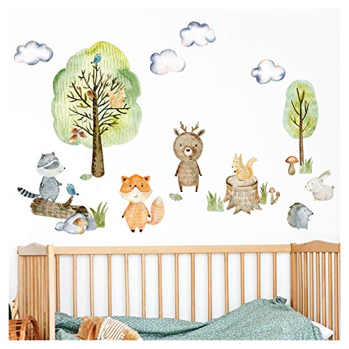 Little Deco Wandtattoo Waldtiere mit Bäume Pilze und Gras I M - 152 x 84 cm (BxH) I Wandsticker Babyzimmer selbstklebend Wandaufkleber Kinderzimmer Junge DL458