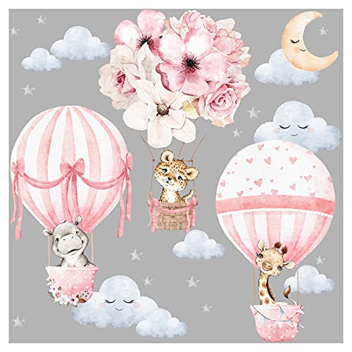 Little Deco Wandtattoo Wandsticker Kinderzimmer Tiere Heißluftballon Wandaufkleber Blumen Wanddeko Spielzimmer Babyzimmer Wandbild Kinder Mädchen DL658-4