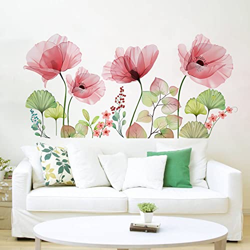 Runtoo Wandtattoo Rosa Blumen Wandsticker Mohnblume Wandaufkleber Wohnzimmer Kinderzimmer Schlafzimmer (red poppies)