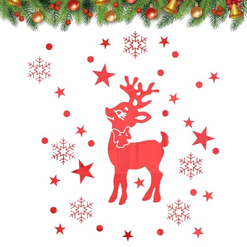 Schneeflocken- und Hirsch-Wandaufkleber, Hirsch-Schneeflocken-Aufkleber für Wände | Weihnachten Wandtattoo Aufkleber abnehmbar | Wandaufkleber für Kinderzimmer, Zuhause, Schaufensterdekorationen