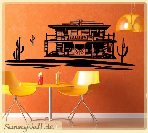 Sunnywall Wandtattoo Wandaufkleber Aufkleber - Western Saloon Kaktus Landschaft Stadt Town Größe Größe 3