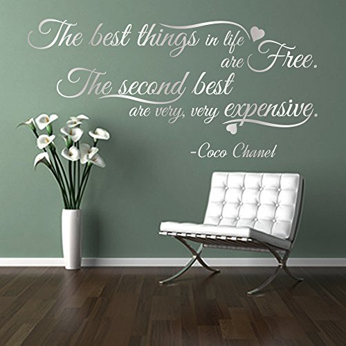 The Best Things in Life sind frei CC Coco Chanel Mädchen Fashion Zitat Wand Kunst Aufkleber Aufkleber Worte, silber (Metallic), 85 x 41 cm
