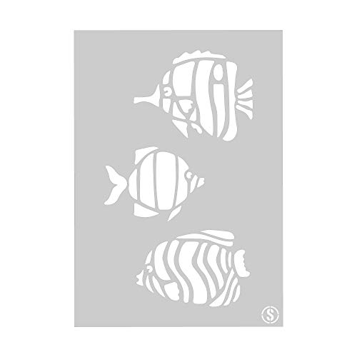 The Stencil Studio Schablone fenfushi Fisch Schablone, wiederverwendbar, – Größe Klein (A4) (10319s)