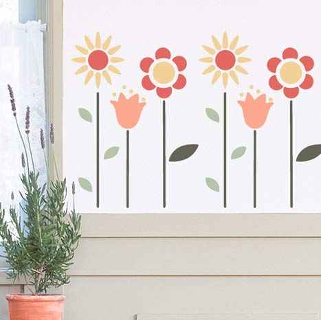 The Stencil Studio Schablone Funky Flowers Schablone, wiederverwendbar, – Größe Klein (A4) (10087S)