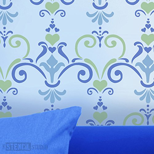 The Stencil Studio Schablone Love Damast Schablone, wiederverwendbar, – Größe Klein (A4) (10102S)