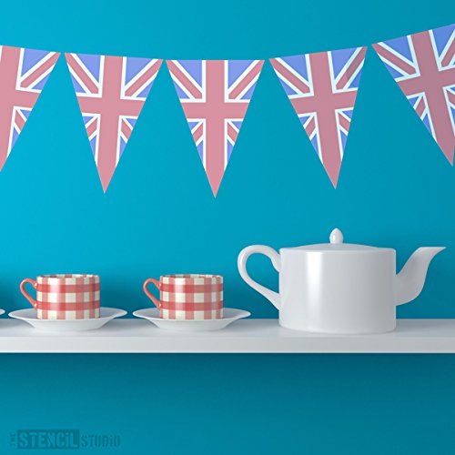 The Stencil Studio Schablone Union Jack Wimpelkette Schablone, wiederverwendbar, – Größe Klein (A4) (10238s)