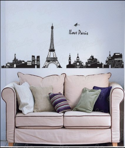 Great Tattoos Wandaufkleber Wandtattoo Wandsticker I Love Paris Eiffel Tower WAK-044