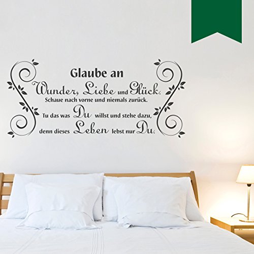 Wandkings Wandtattoo Glaube an Wunder, Liebe und Glück. Schaue nach vorne und niemals zurück. Tu das was Du willst und stehe dazu, denn dieses Leben lebst nur Du. 50 x 22 cm dunkelgrün - erhältlich in 33 Farben