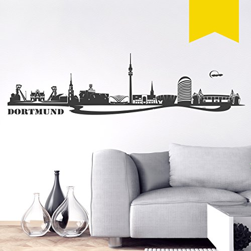 Wandkings Wandtattoo Skyline Dortmund (mit Sehenswürdigkeiten und Wahrzeichen der Stadt) 220 x 57 cm gelb - erhältlich in 33 Farben