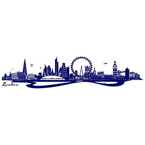 WANDKINGS Wandtattoo Skyline London (mit Sehenswürdigkeiten und Wahrzeichen der Stadt) 150 x 33 cm dunkelblau - erhältlich in 33 Farben
