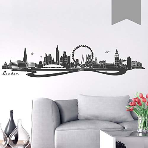 WANDKINGS Wandtattoo Skyline London (mit Sehenswürdigkeiten und Wahrzeichen der Stadt) 210 x 47 cm Mittelgrau - erhältlich in 33 Farben