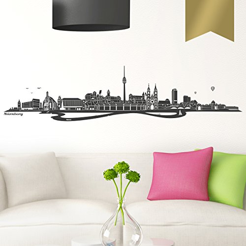 Wandtattoos und Wandsticker zum Verlieben in königlicher Qualität von WANDKINGS.DE! Nürnberg auch Nümberch genannt, als kulturelles Zentrum des Frankenlandes, hat schon viele Besucher mit seinen kulturellen und architektonischen Schätzen in ihren Bann gezogen. Wir haben jetzt mit der Wandtattoo Skyline die Highlights der Stadt detailverliebt in Szene gesetzt. Unsere Wandtattoo Skyline von Nürnberg zeigt den Weißen Turm, das Congress Center, die Frauenkirche, das Neue und Alte Rathaus mit dem Schönen Brunnen, die Nürnberger Burg als Wahrzeichen der Stadt, das Nürnberger Ei den Fernmeldeturm, das Grundigstadion als Heimat des 1.FC Nürnberg, die St. Lorenzkirche, den Tiefen Brunnen, den Business-Tower BTN, das Grundig-Hochhaus, den Hauptbahnhof und die ehemalige Kongresshalle. Hol Dir jetzt mit der Wandtattoo Skyline von Nürnberg einen echten Hingucker für Deine Wohnung und verleihe Deinen Wänden mit der Silhouette der Frankenperle einen edlen Touch! Erhältlich in den Größen 100 x 23 cm, 130 x 30 cm, 160 x 37 cm, 190 x 44 cm und 220 x 51 cm. Lieferumfang: Verklebehilfe Rakel Probe-Wandtattoo zum Testen bebilderte Anleitung Wandtattoo