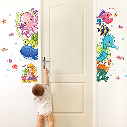 Wandtattoo Unter dem Meer Wandaufkleber Fisch Tintenfisch Wandsticker für Kinderzimmer Schlafzimmer Badezimmer Tür Wanddeko