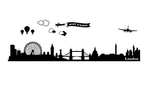 Wandtattoo wandaufkleber Aufkleber Wandsticker wall sticker Wohnzimmer Schlafzimmer Kinderzimmer City Stadt London Skyline Landschaft 30 Farben zur Wahl wst07 motiv1 (073 dunkelgrau, Größe3:ca.180x26cm )