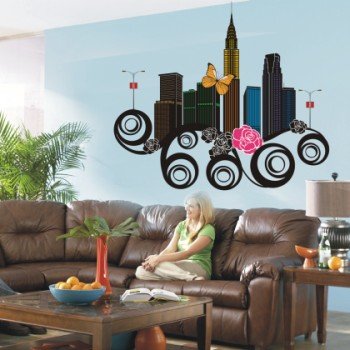 WANDTATTOO/Wandsticker w402 Skyline New York Wandaufkleber einfarbig Farbwahl 48 Farben, 120x104 cm