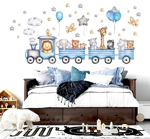 WONDER MURALS Wandtattoo Kinderzimmer Deko Mädchen Junge Baby Wandaufkleber Tiere Zug Blau Wandsticker Wanddeko Babyzimmer