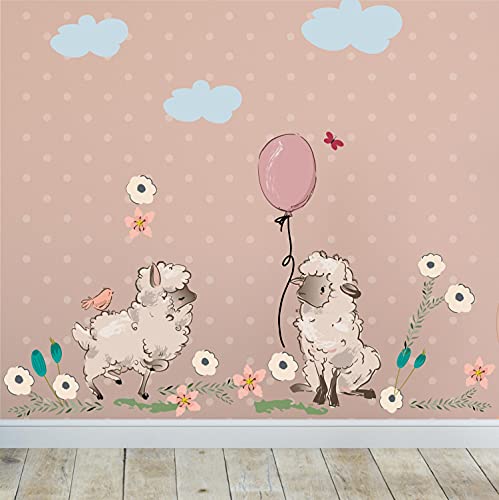 Sunnywall Aufkleber Wandsticker Sheep Blumen Kinderzimmer Set Wandaufkleber II