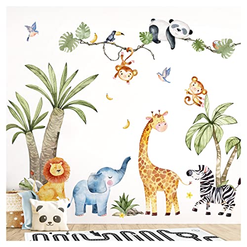 decalmile Wandtattoo Dschungel Tiere Wandaufkleber Safari Elefant Giraffe Löwe Wandsticker Babyzimmer Kinderzimmer Schlafzimmer Wanddeko