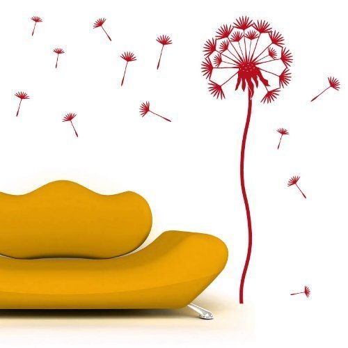 Klebesüchtig A350 Wandtattoo 2x Pusteblumen + 25 Samen 180cm / 120cm rot (erh. in 40 Farben + 3 Größen)