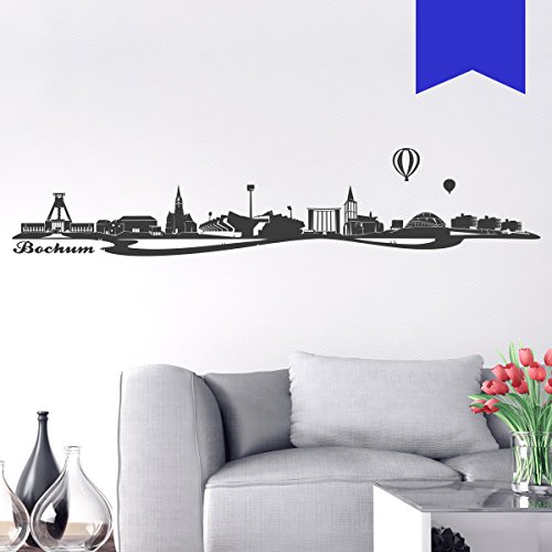 WANDKINGS Wandtattoo Skyline Bochum (mit Sehenswürdigkeiten und Wahrzeichen der Stadt) 115 x 23 cm schwarz - erhältlich in 33 Farben