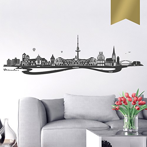 INDIGOS UG - Wandtattoo Wohnzimmer - Wandaufkleber Kinderzimmer farbige Wandschrift Städtename Städtename Munster mit Sehenswürdigkeiten [...]