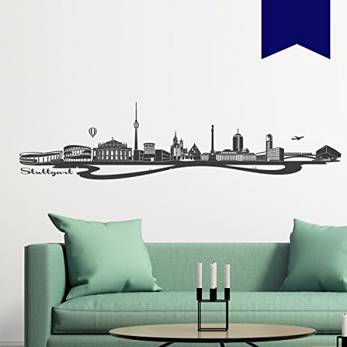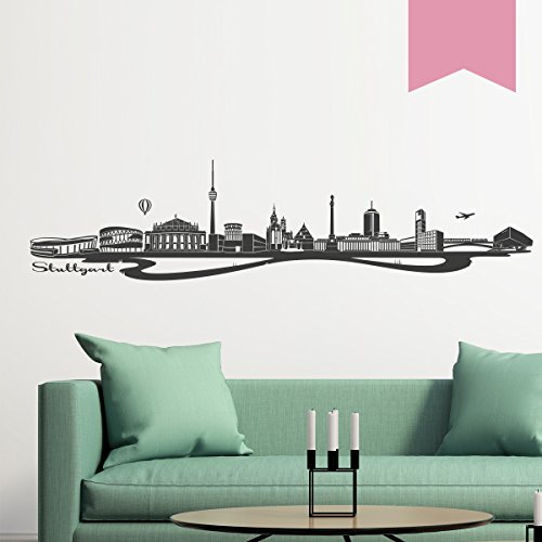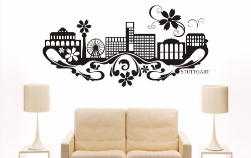 INDIGOS UG - Wandtattoo Wandsticker Wandaufkleber Aufkleber - Wandaufkleber e889 Skyline Stadt - Stuttgart (Deutschland) Design 3-80x39 cm [...]