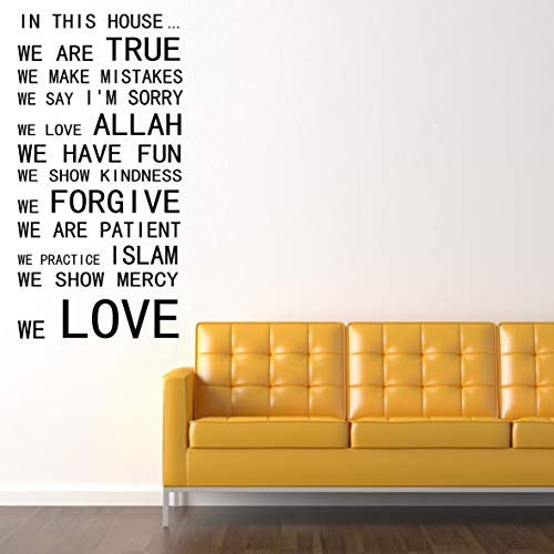 YOUSHIHUI In diesem Haus sind wir echte Wandaufkleber Haus Schriftzug Worte Zitat Wandtattoo Wohnzimmer Schlafzimmer Tapete 57x28cm