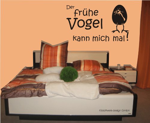 blattwerk-design Wandtattoo, Spruch: Der frühe Vogel kann Mich mal, Humor, Vogel, Größe ca. 730 mm x 450 mm, Auswahl (M071 Grau)