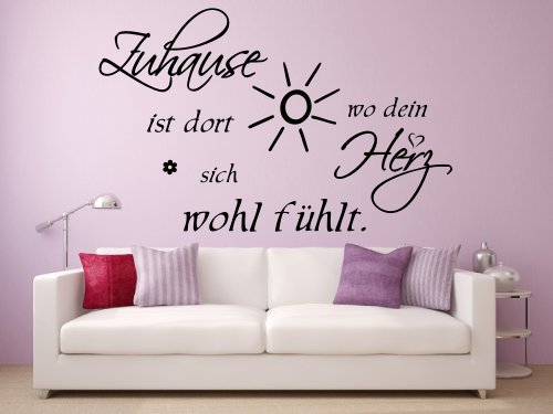 Blumenauto Wandtattoo 68124-58x37 cm~ Spruch Zuhause ist dort wo dein Herz sich wohl fühlt ~ Wandaufkleber Aufkleber für die Wand, Tapetensticker [...]