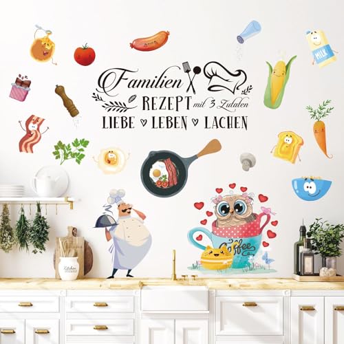 30 Stück | Wandtattoo Küche mit Sprüche Selbstklebend | Eule Koch Kaffee Tasse Gemüse Wandaufkleber | Essen Lebensmittel Wandsticker [...]