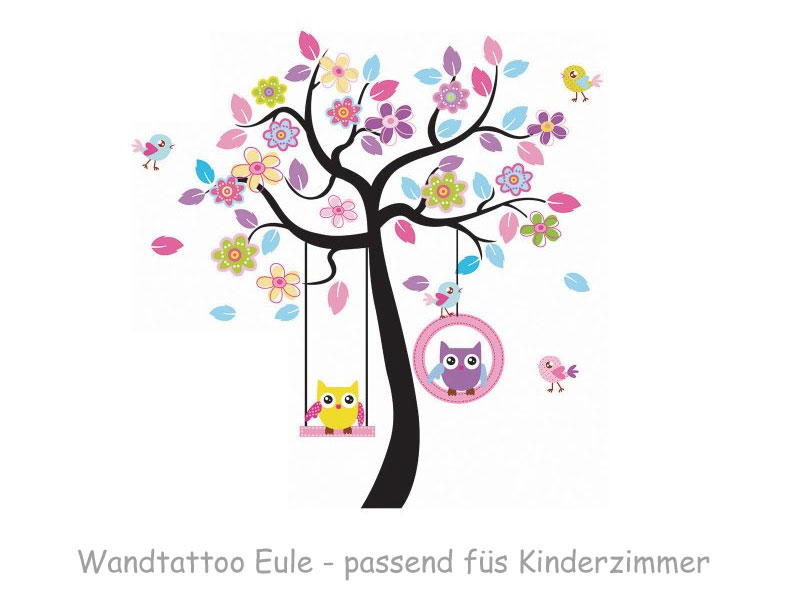 Ihr Nachwuchs wird die beiden schaukelnden Eulen am Baum auf diesem verspielten, kindgerechten Motiv genauso lieben wie die kleinen Vögel, die ebenfalls auf diesem Bild versteckt sind. Selbstverständlich eignet sich dieser farbintensive Wandsticker mit seinen Pastelltönen auch ideal zur modernen Gestaltung Ihres Wohn- oder Schlafzimmers und verleiht jedem Raum im Handumdrehen eine persönliche Note.