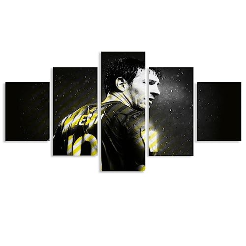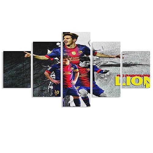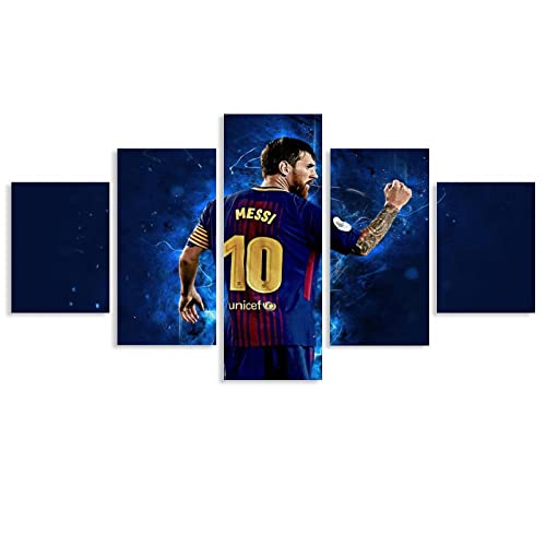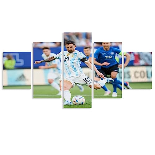 AScdap Art Bild Messi 5 Teilig Sport Fußball Wandbilder Leinwand Schlafzimmer Kunstdrucke Wandbild Wanddekoration Deko