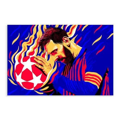 BKHJSASU Lionel Messi Fußball-Poster, Leinwand, Poster, Schlafzimmer, Dekoration, Landschaft, Büro, Raumdekoration, Geschenk, 50 x 75 cm