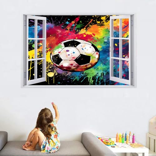HPNIUB 3D Fussball Wandtattoo,Durchbruch Wandaufkleber für Kinderzimmer Jungen, 70×55CM,Bunte Fußball Wandbild,Wandtattoo Junge [...]