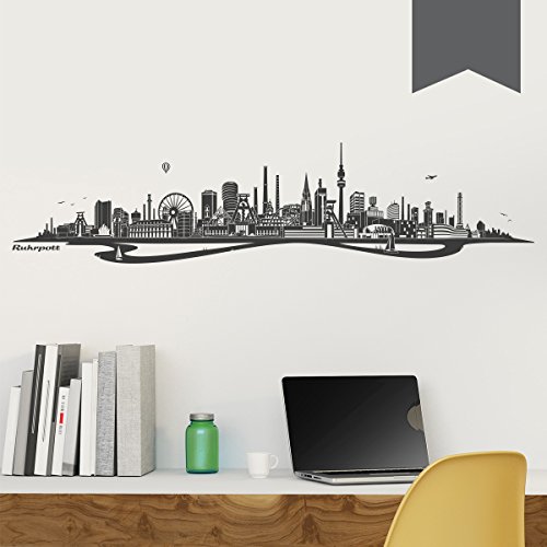 WANDKINGS Wandtattoo Skyline Ruhrpott mit Fluss 120 x 27 cm - Dunkelgrau - 35 Farben zur Wahl