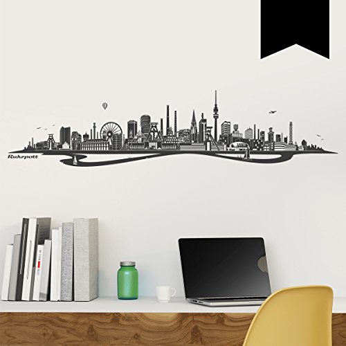 WANDKINGS Wandtattoo Skyline Ruhrpott mit Fluss 140 x 32 cm - Schwarz - 35 Farben zur Wahl