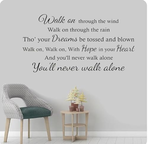 Wandtattoo mit Zitat „You'll Never Walk Alone“, Fußball-Zitat, Wandbilder, Zimmer-Dekoration, schwarz, 109 x 57 cm
