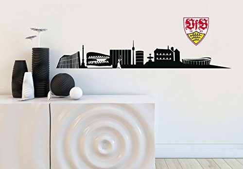 selbstklebendes Wandtattoo VfB Stuttgart Fanartikel Aufkleber Fussball Skyline schwarz 120x19cm mit Logo 18cm