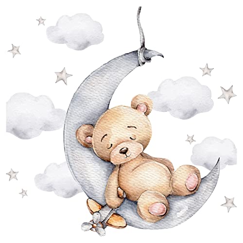 Little Deco Wandtattoo Bär auf dem Mond Wandsticker für Teddybär mit Sterne Babyzimmer Deko DL831 2