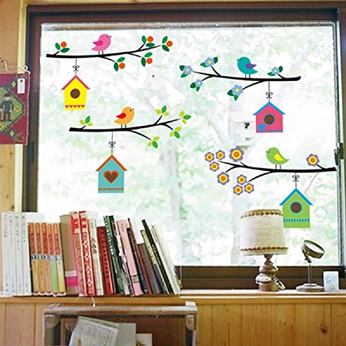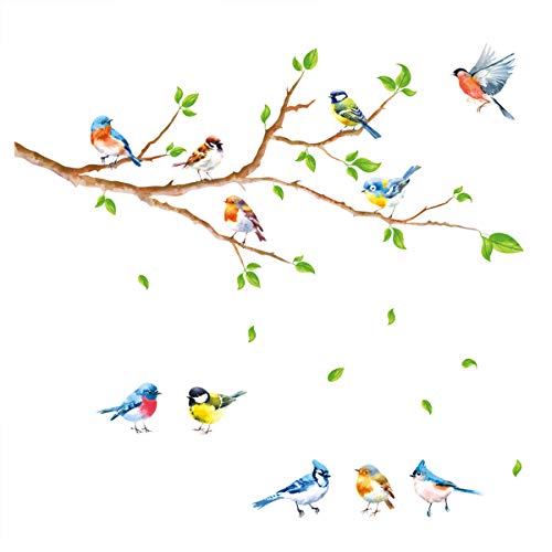 decalmile Wandtattoo Vögel Baum Zweige Wandsticker Grüne Blätter Wandaufkleber Kinderzimmer Wohnzimmer Küche Wanddeko