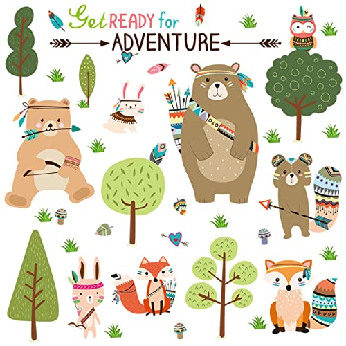 WandSticker4U®- XL Wandtattoo Kinderzimmer INDIANER SET I Wandbilder: 162x83cm I Wandsticker Kinder Wald-tiere Baum Grün Fuchs Bär Eule [...]
