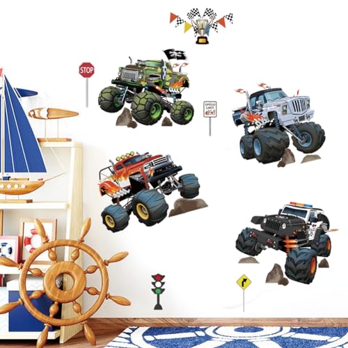 Wandtattoo Autos Junge Wandaufkleber Rennauto Cars Wandsticker Wanddeko 3D-Effekt Aufkleber für Kinderzimmer Jungen Babyzimmer Schlafzimmer