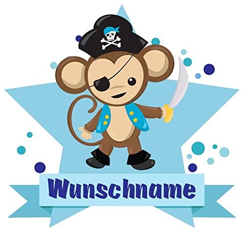 Samunshi® Piraten Affe Wandtattoo Türschild mit Name personalisierbar Kinderzimmer Türaufkleber Baby Wandaufkleber - 40x35cm mehrfarbig