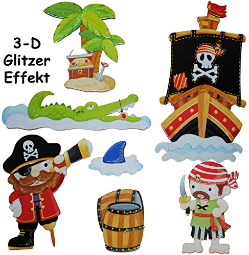 alles-meine.de GmbH 7 TLG. Set__ 3-D Effekt Glitzer ! Wandtattoo/Wandsticker - Pirat & Piratenschiff - auch als Fensterbild - selbstklebend [...]